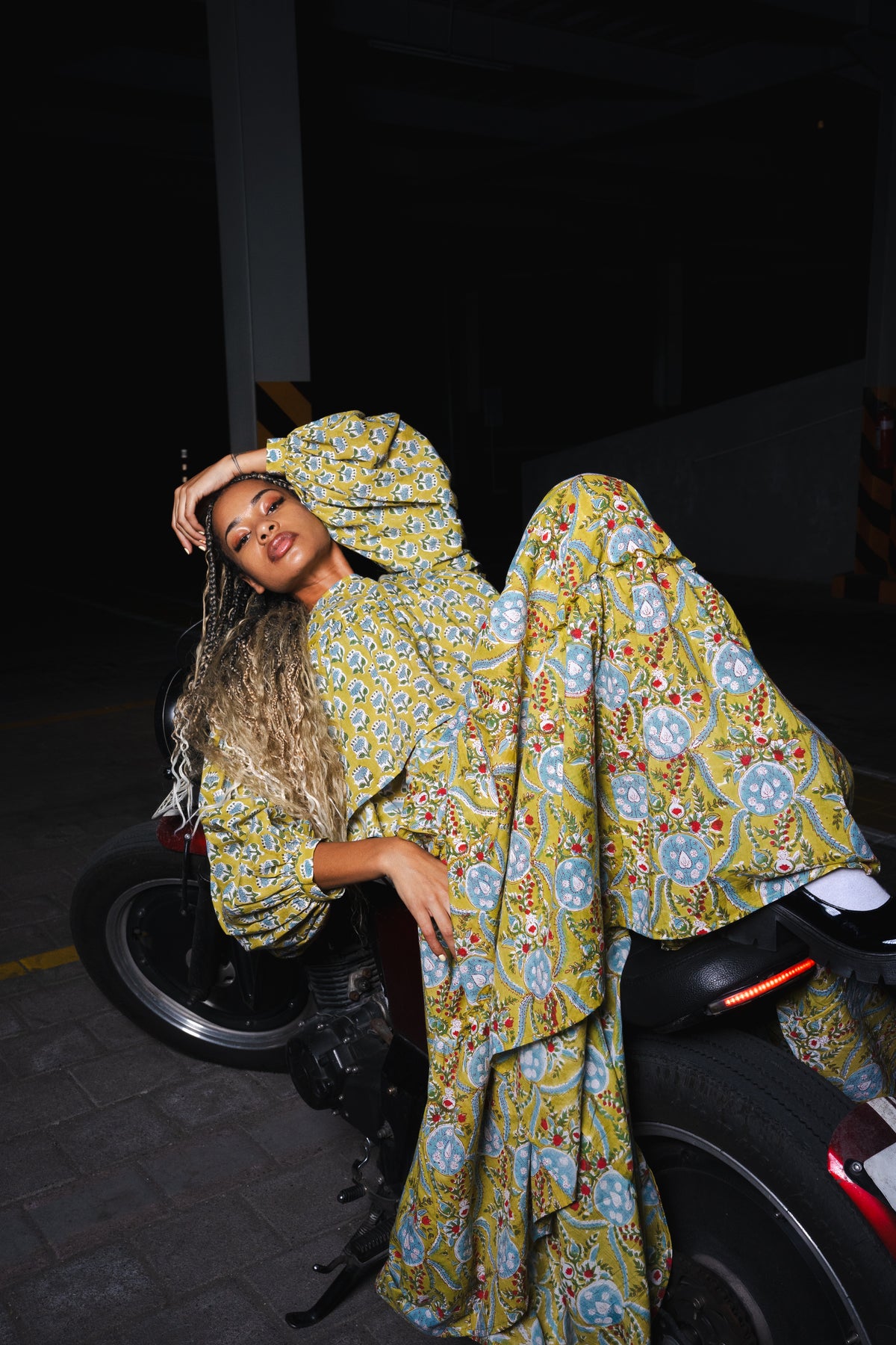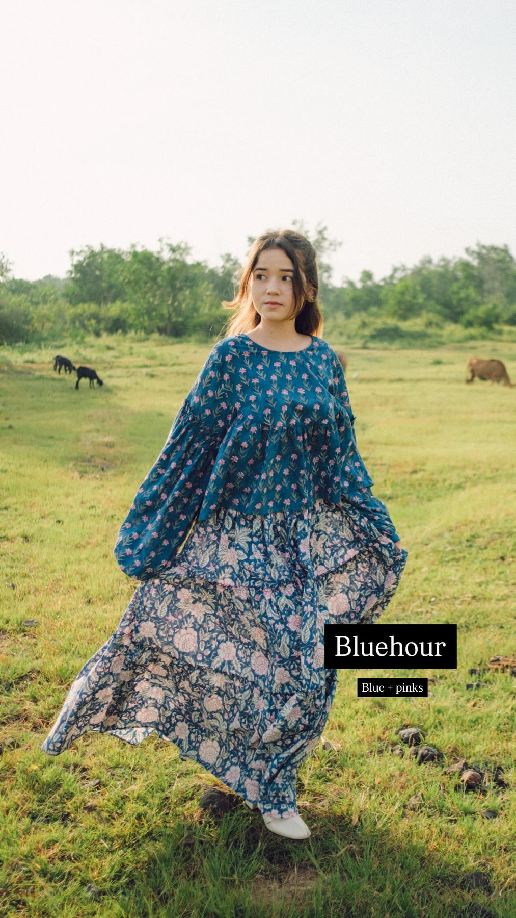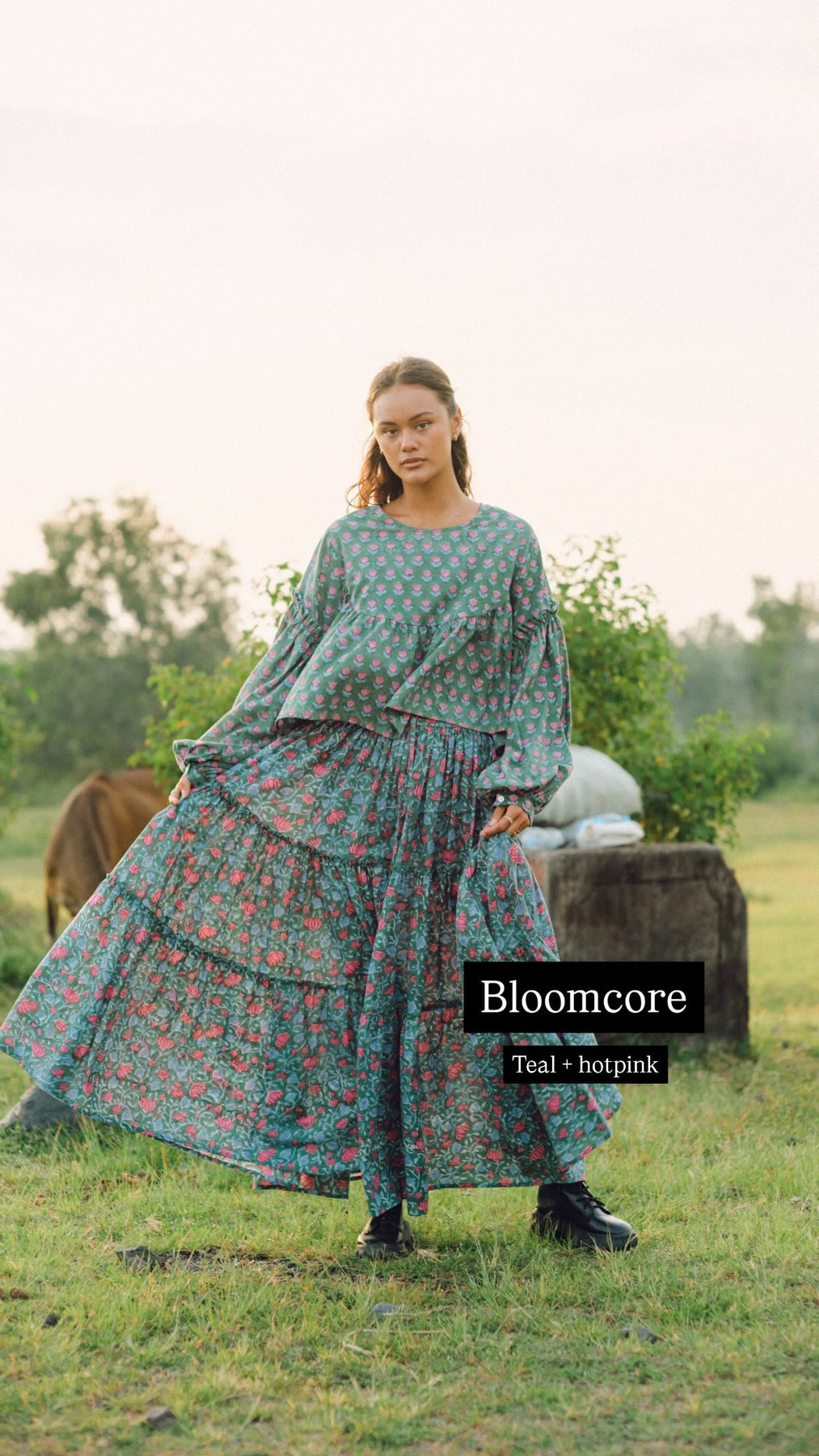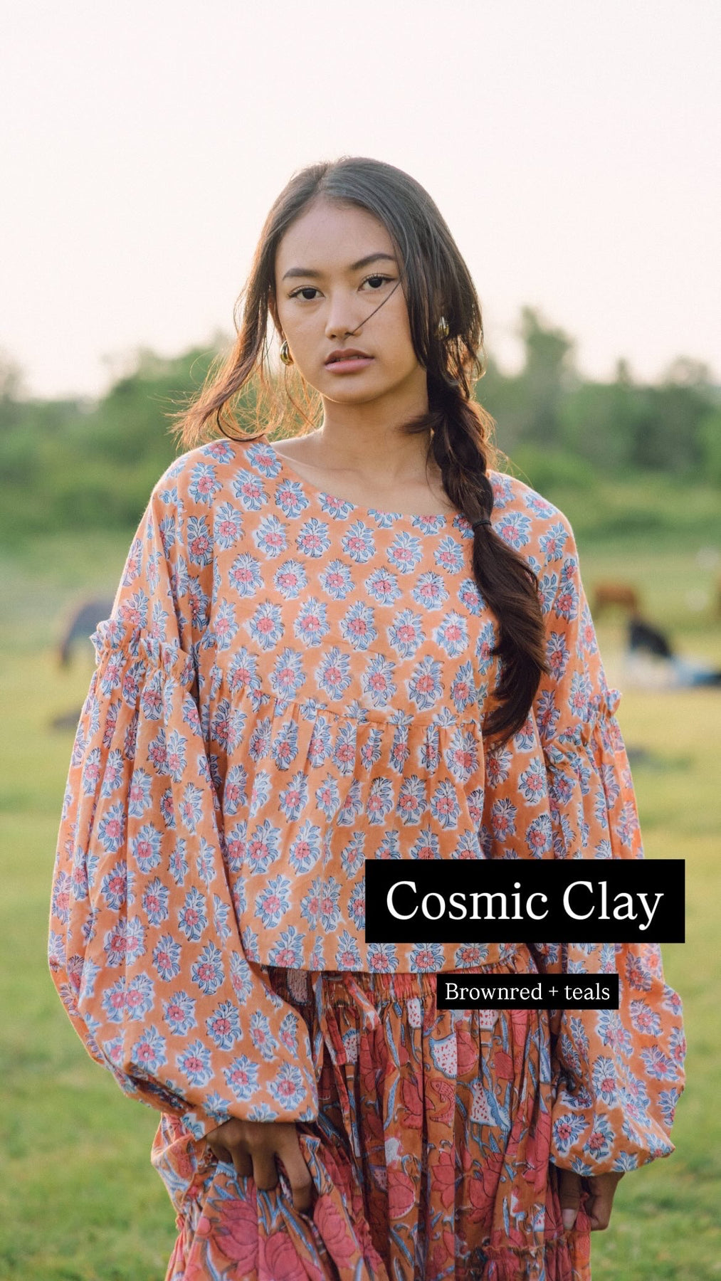 Made from Indian cotton, she is a lightweight, breathable, and naturally soft fabric known for its comfort in warm weather. It’s woven from pure cotton threads then hand-printed or hand-blocked, giving every piece a natural texture and artisanal feel. It drapes gently, feels cool on the skin, and gets softer with every wash making it perfect for everyday wear <3