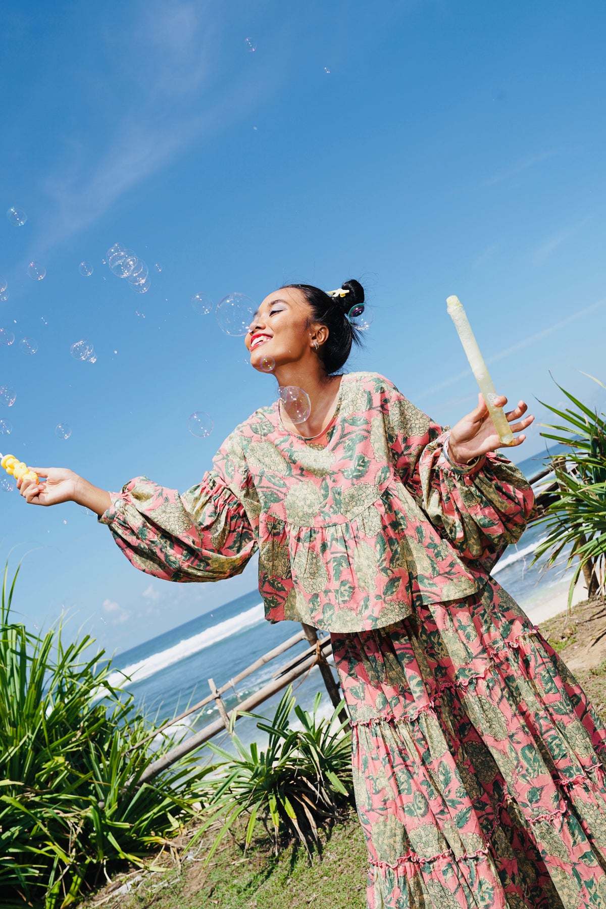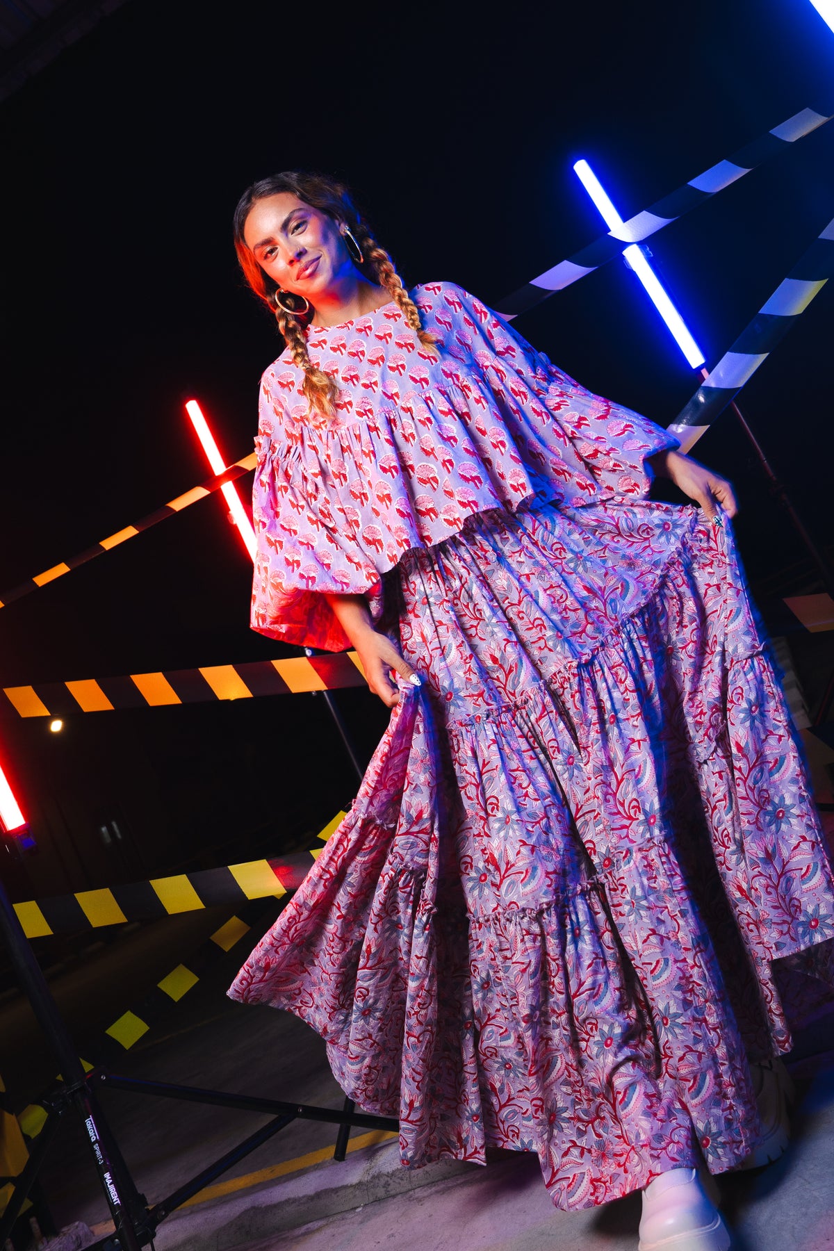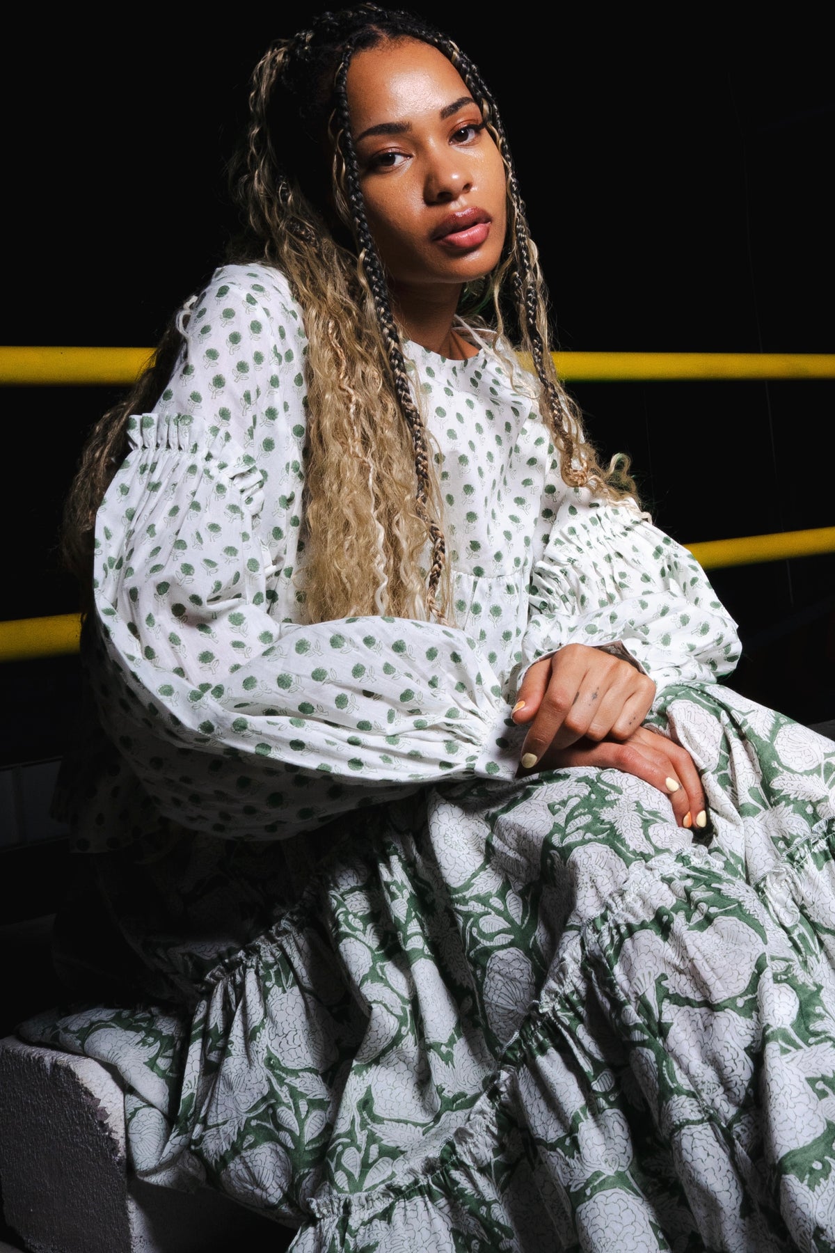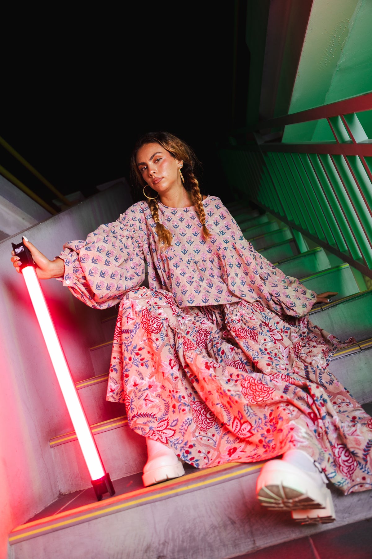 Made from Indian cotton, she is a lightweight, breathable, and naturally soft fabric known for its comfort in warm weather. It’s woven from pure cotton threads then hand-printed or hand-blocked, giving every piece a natural texture and artisanal feel. It drapes gently, feels cool on the skin, and gets softer with every wash making it perfect for everyday wear <3